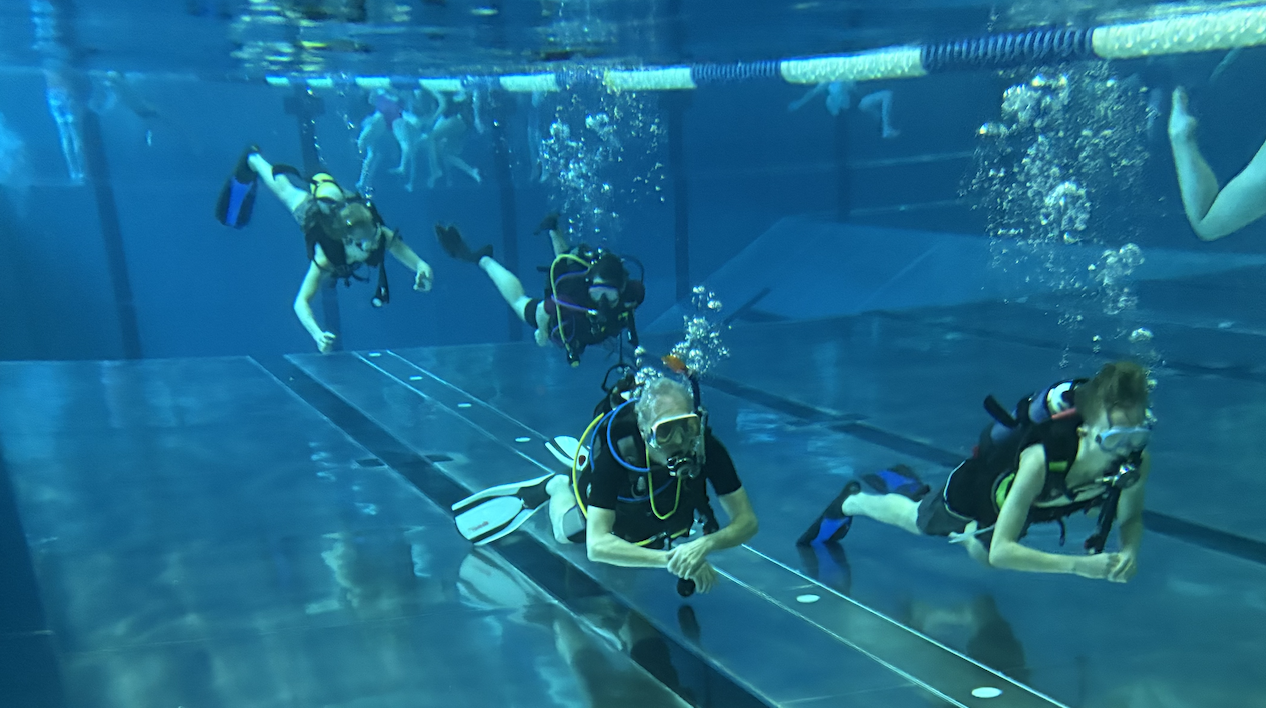 Fünf engagierte Mitglieder des Vereins begleiten den Schwimmunterricht der Klasse und führen die jeweils eine Kleingruppe der Jugendlichen professionell und sicher an das Tauchen mit Druckluftgeräten heran. Dabei sammeln die Schülerinnen und Schüler nicht nur neue sportliche Erfahrungen, sondern lernen auch wichtige Grundlagen zu Technik, Sicherheit und Teamarbeit unter Wasser.